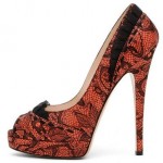La collezione di calzature spazia da quelle gioiello, con migliaia di punti luce, quelle con pietre semi preziose, i sandali, le decolletes in raso spuntate con nastrino fiocchetto sulla punta, a plateau, tacchi alti e allure anni ’50.