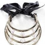 La prima è una collana a nastro dell’Atelier Swarovski, realizzata con pietre preziose e nastri di raso o velluto.