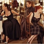 Grazie ad una vera sala trucco degli anni cinquanta di Hollywood, l’atmosfera sembra passata, e la collezione offre corsetti, gonne dalla linea aperta a campana e coda di cavallo alta.