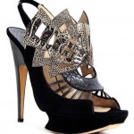 I materiali utilizzati sono il camoscio, il cuoio, la pelle di serpente e pellicce per un accattivante contrasto di texture garantito, mentre meno convenzionali, ma pur sempre stilosi sono gli accenti metallici e perle lucenti che rendono ogni pezzo fantastico.