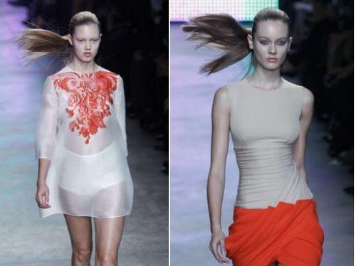Stella McCartney ha presentato una linea molto elegante, gonne corte, spalle spesso scoperte, fatta di tagli sartoriali semplici e voluta nei colori carne e nero. La maison Comme des Garcons predilige i tessuti plastificati, geometrie che esaltano la silhouette, in vero total black.