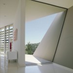 La configurazione del terreno scosceso ha dato agli architetti l’opportunità di progettare gli angoli di visuale a seconda degli angoli solari per massimizzare la luce naturale mentre ha cercato di fare attenzione a non aumentare la temperatura delle varie parti della casa . All’interno, un unico corridoio funge da cuscinetto termico tra il vetro e le camere.