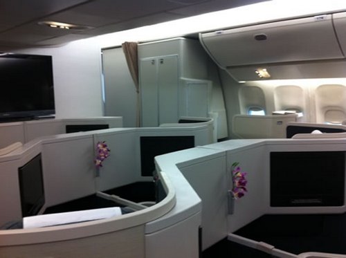 Il B777 – 300ER è un Boeing che per la Businnes Class non solo offre Champagne, ma anche cibo prelibato e per la classe economica ha i sedili che diventano una specie di letto, una vera gioia per il passeggero.